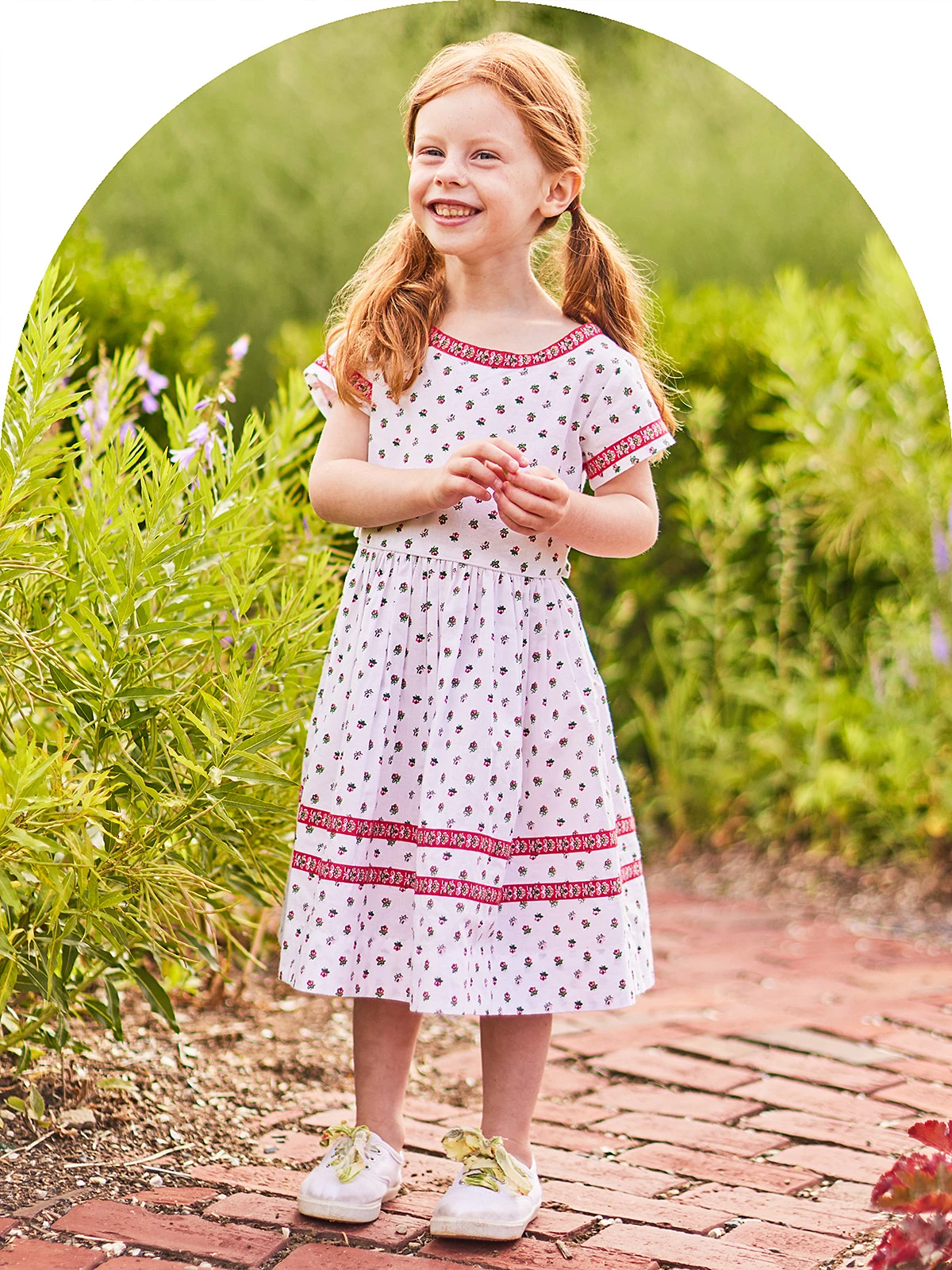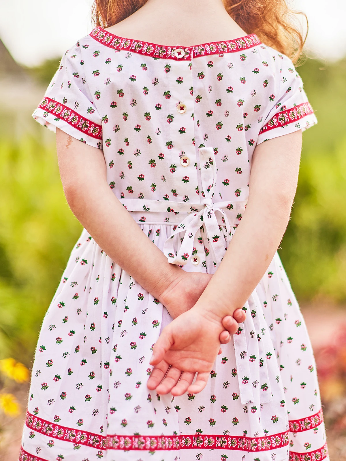 - Printed ribbon detail at hem, neckline and sleeves