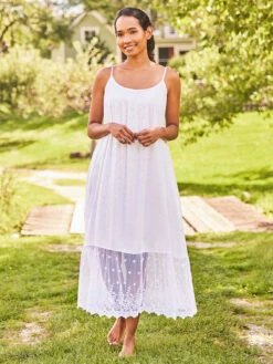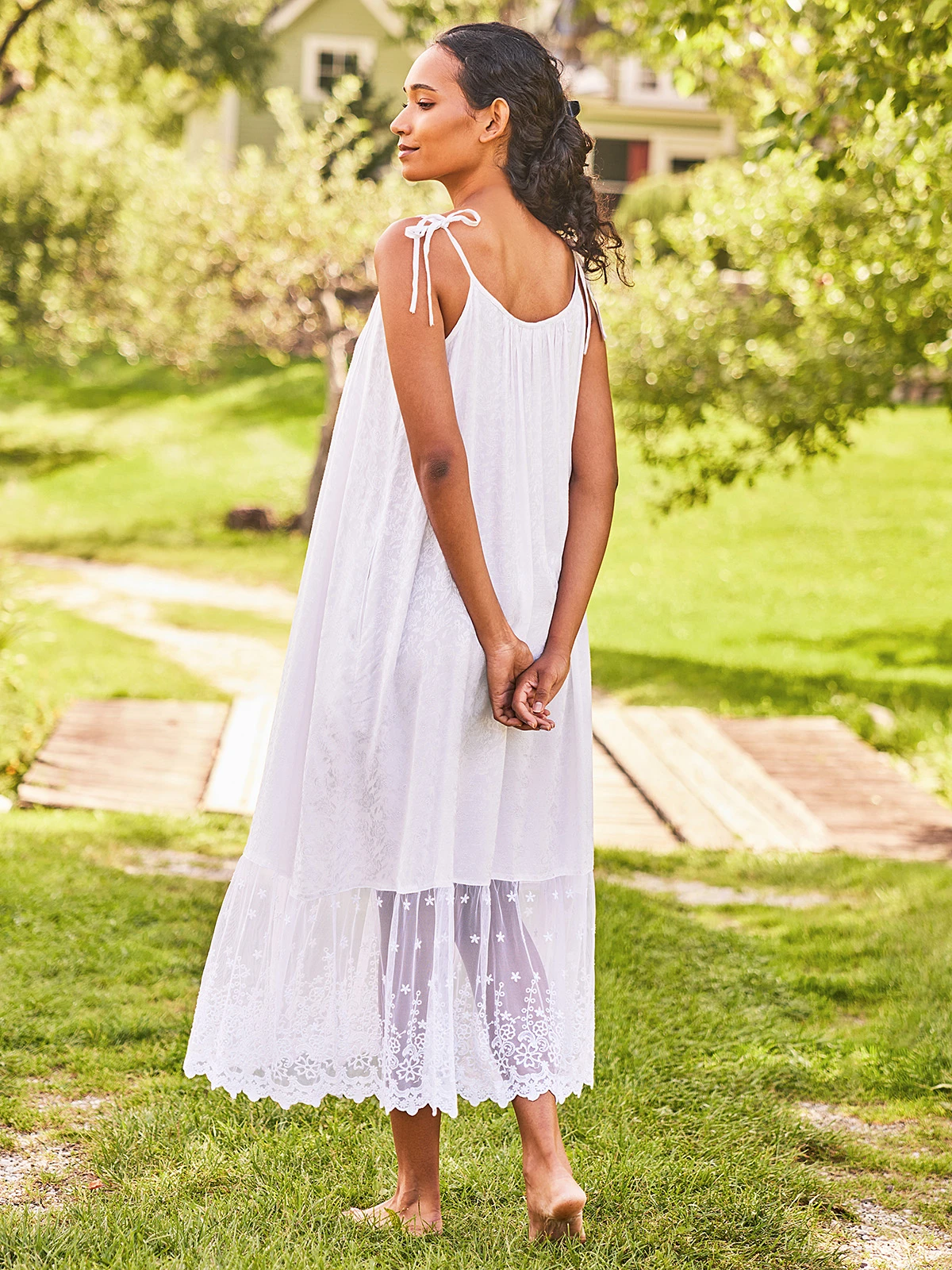 Beloved! As lovely as it gets, this stunning nighty crafted from sumptuous shantoon jacquard features delicately embroidered lace, petite pintucks and side seam pockets.