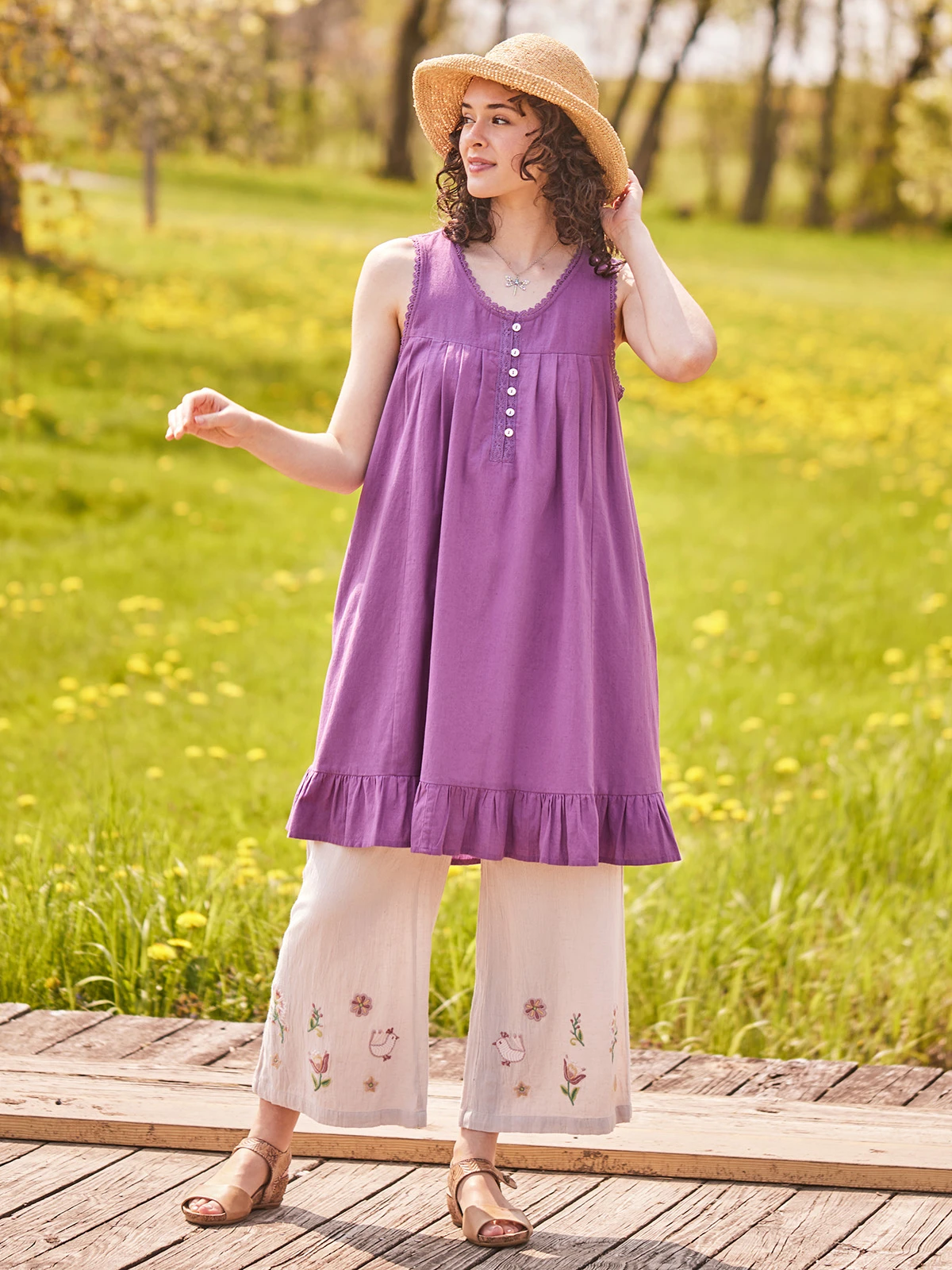 - Flounce detail at hem