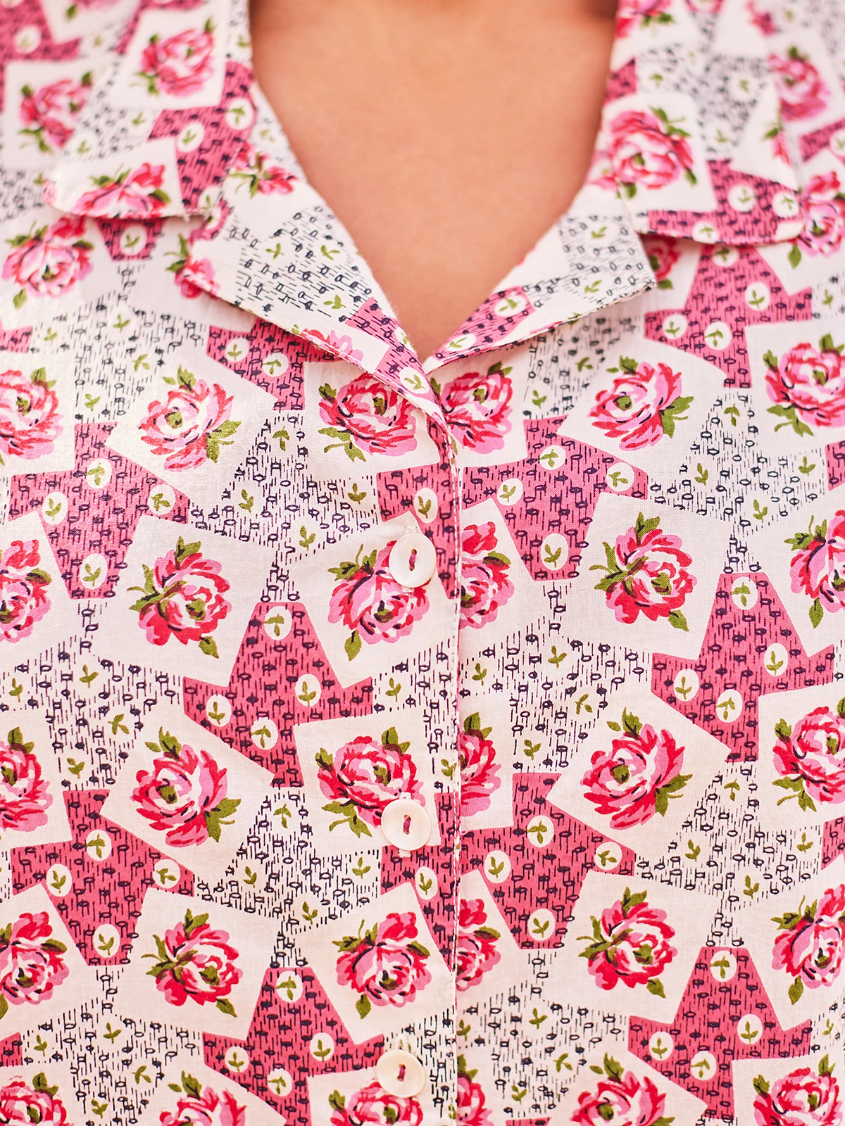 - Mother of pearl buttons down front