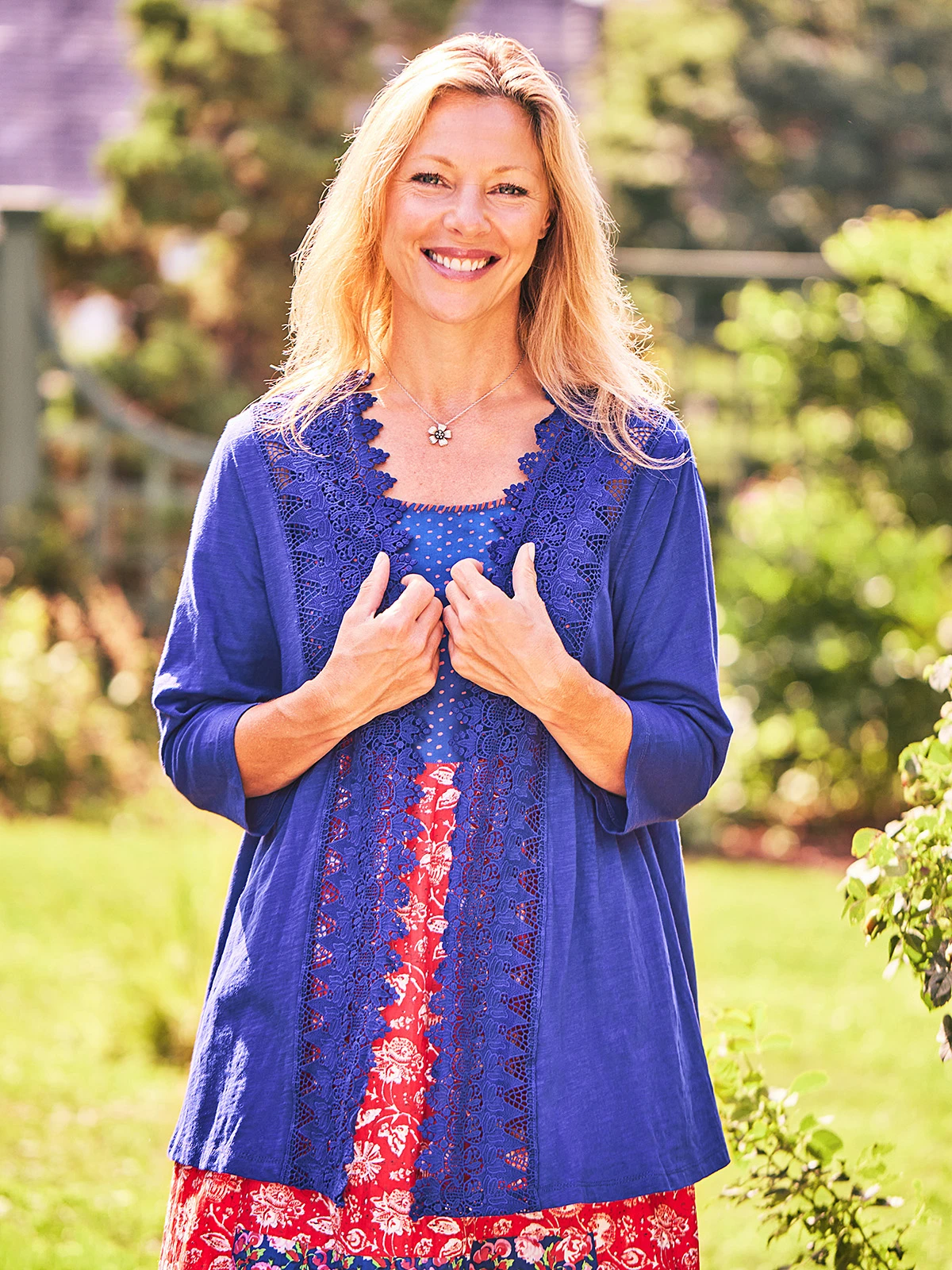 More of a ‘pretty-up’ than a coverup, the Chloe is ready to make a statement as you make your way! Lovely weight and texture of cotton artfully fashioned with luxurious lace and net trims and gentle gathers.