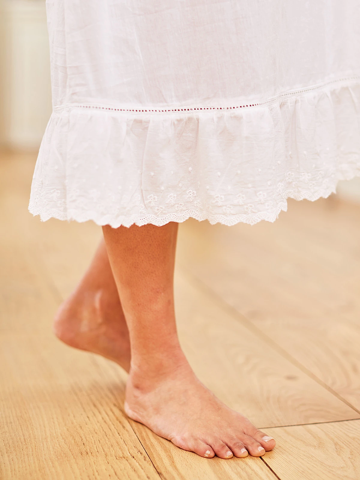 - Eyelet ruffle at hem