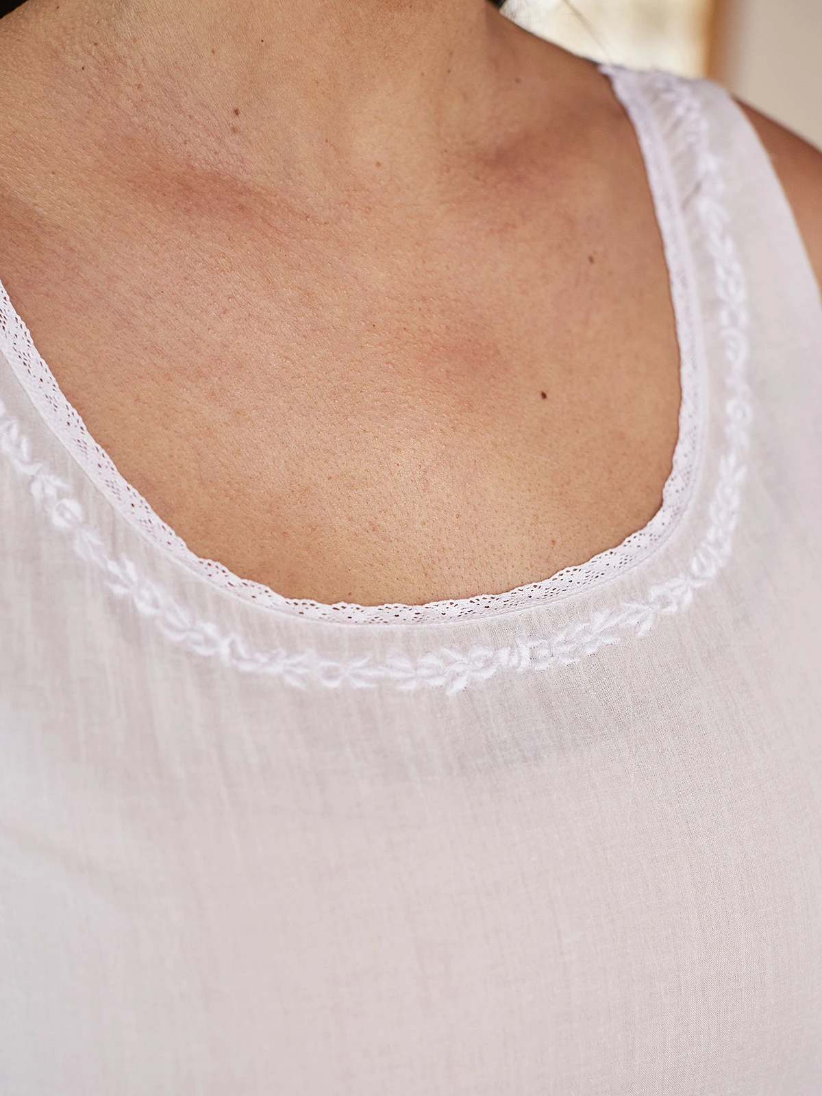 - Charming embroidery and lace trim frame neckline