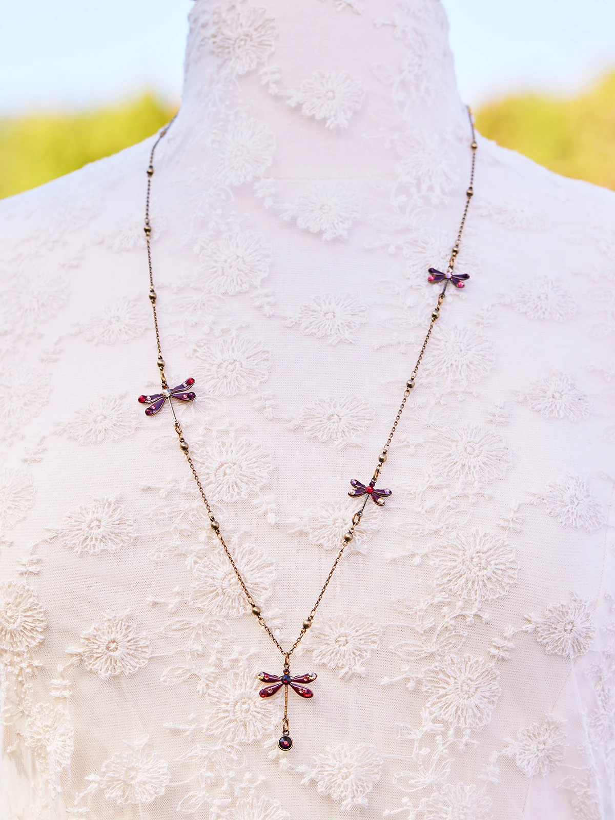 Around the world, the dragonfly is recognized as a symbol of transformation and renewal. Embrace the spirit of the dragonfly while wearing this warm crimson hued necklace! April is thrilled to partner with great American designers like Anne Koplik—whose vintage, heirloom inspired jewelry makes you feel beautiful inside and out.
