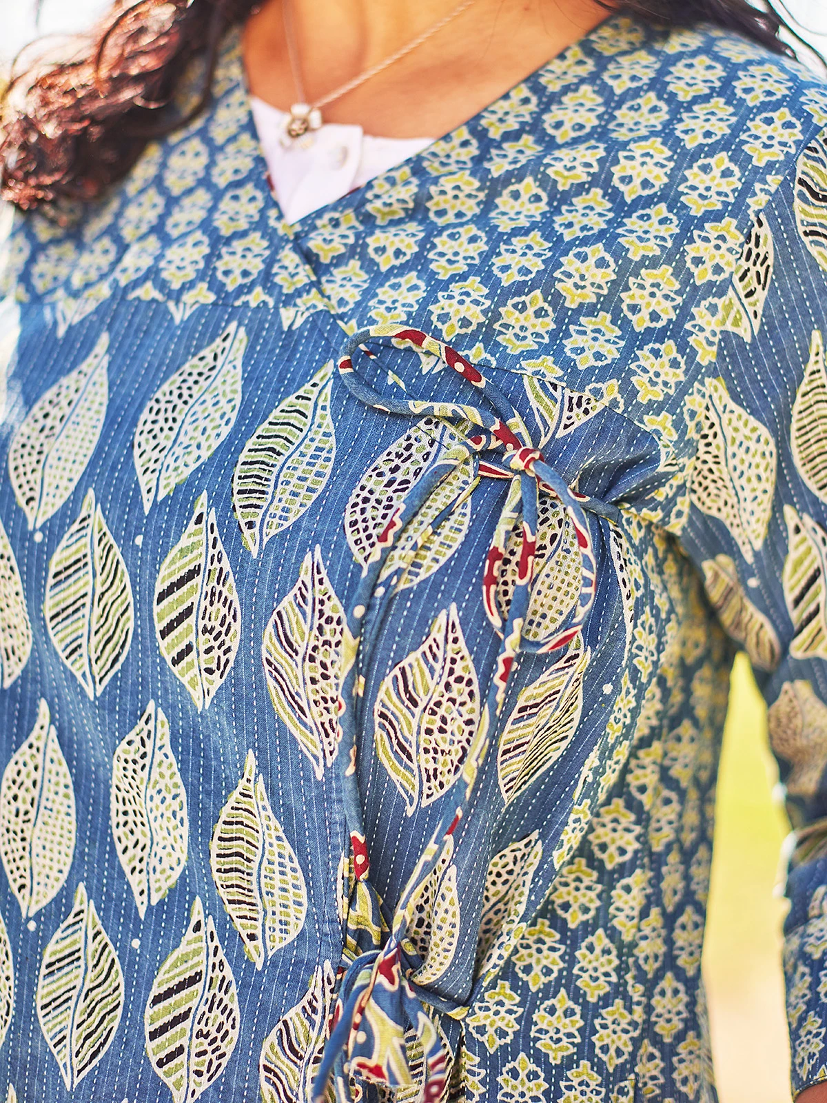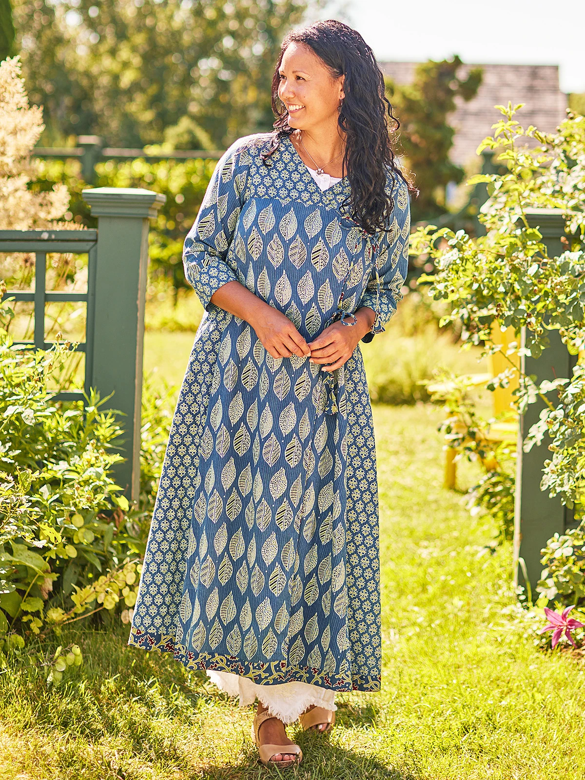 A signature April Cornell design, the Indigo Wrap Jacket showcases a rich North Indian motif hand printed on cotton. Exquisitely elegant and thoughtfully styled so as to be worn open or closed. Fantastic.