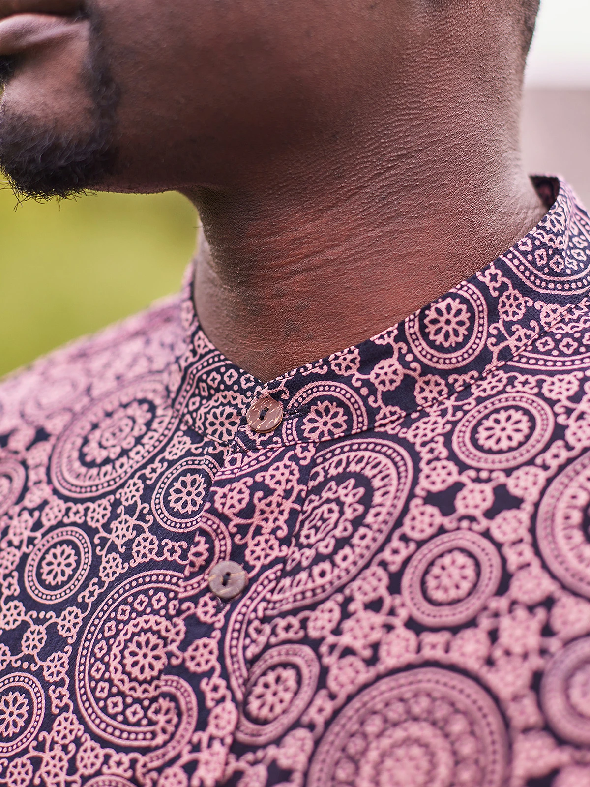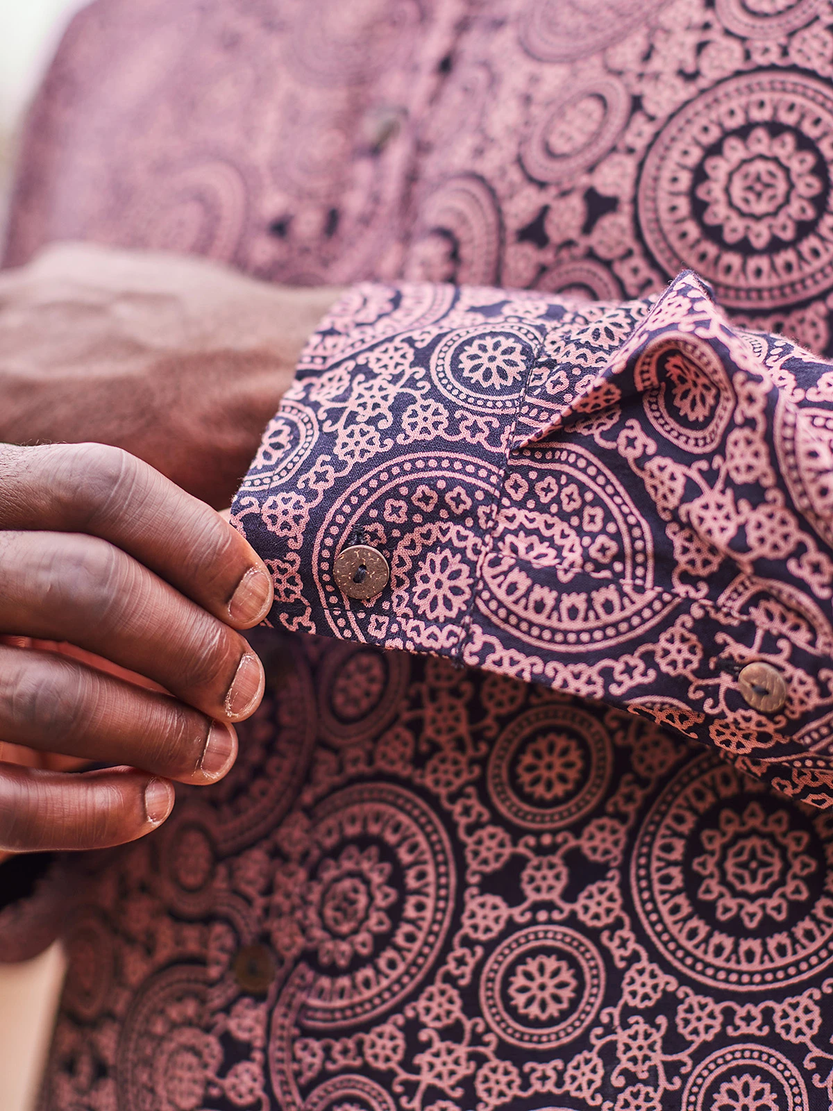 This pure cotton piece is naturally dyed using pomegranates and iron rust. The medallion style block print pairs well with quiet contemplation and good conversation.
