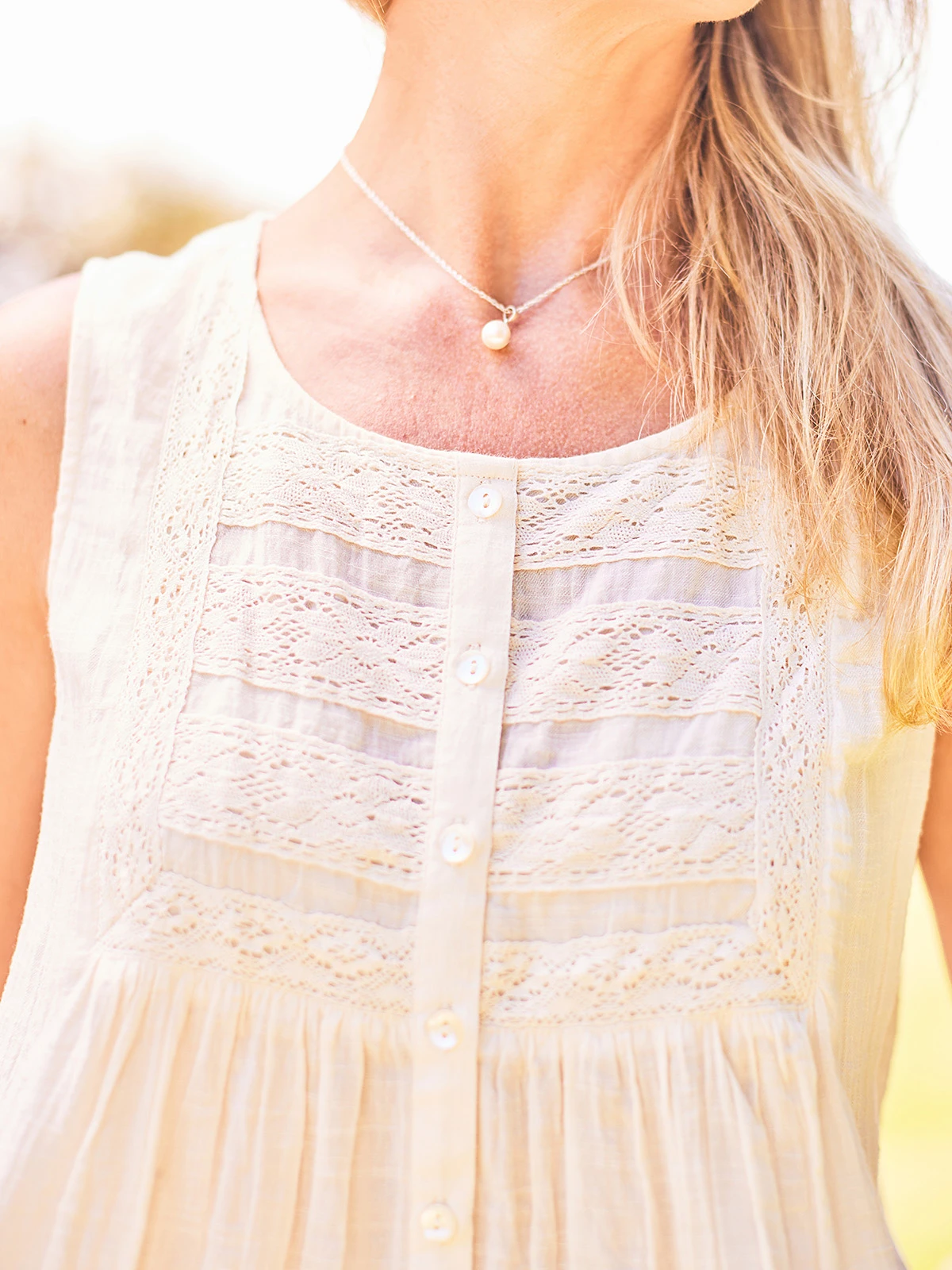 - Yoke framed by delicate tonal lace