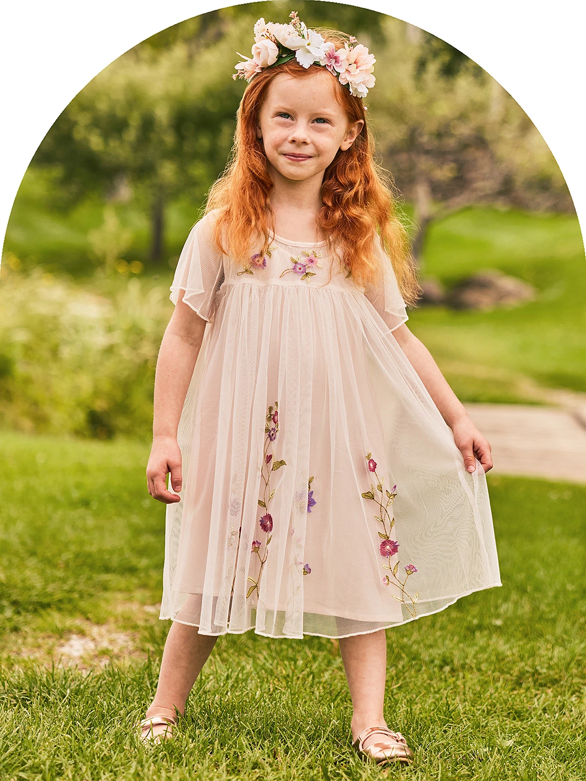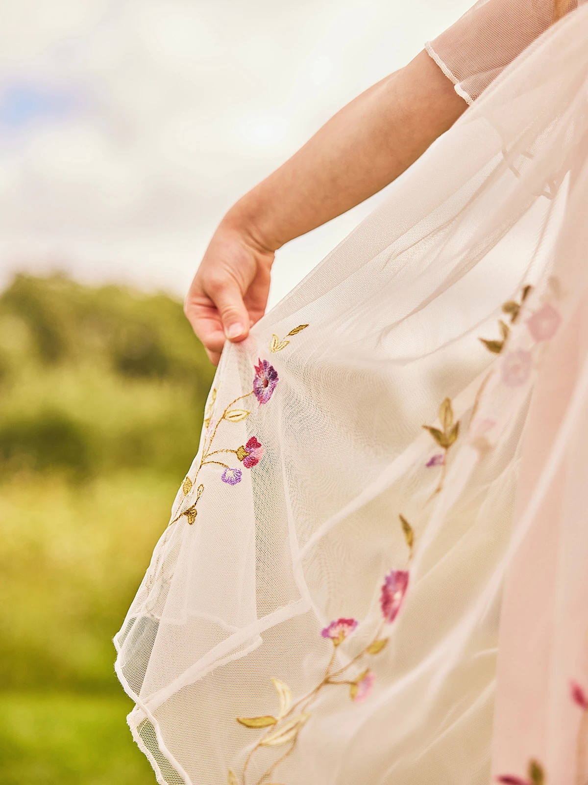 A marvelous manifestation of graceful details, the Princess showcases hand guided embroidery on transluscent net, natural mother of pearl buttons and a fully detachable slip. Your Majesty!