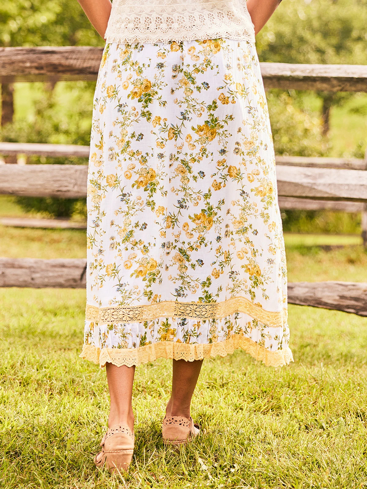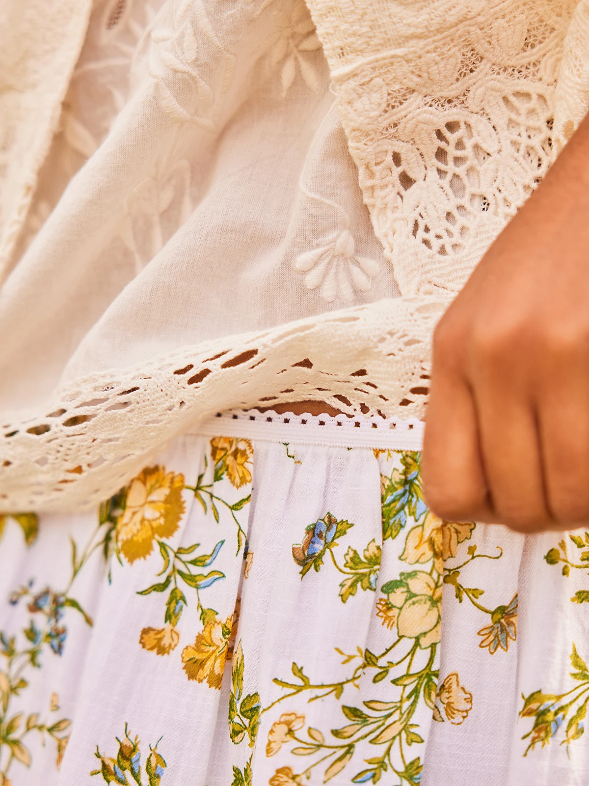 - Cotton lace detail at hem