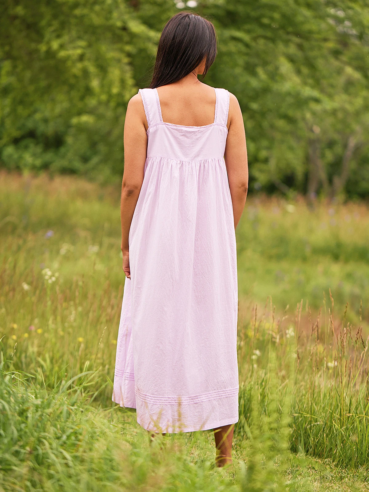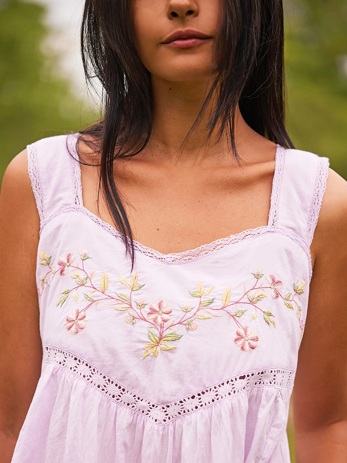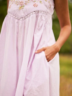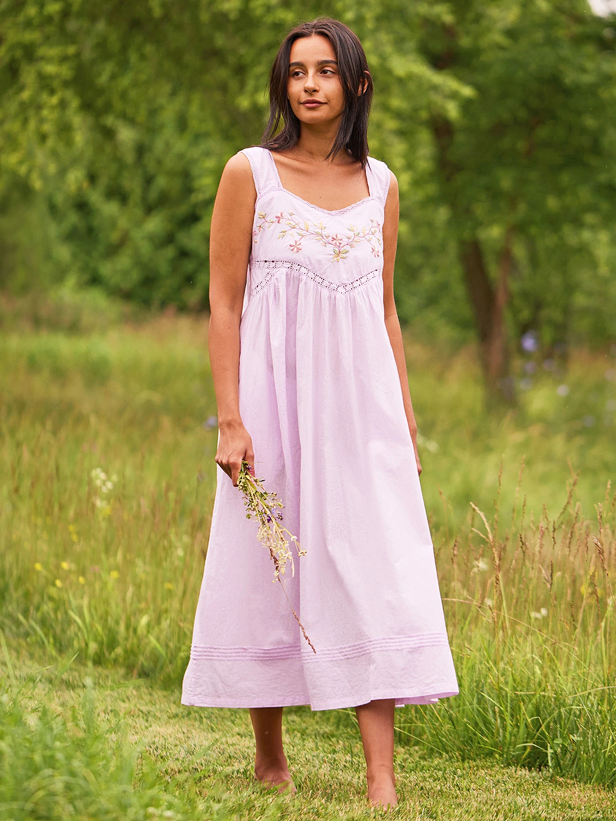 Does it get any better!? Absolutely adore the violet hue of this easy cotton gown fashioned with wonderful embroidery and inset lace trims.