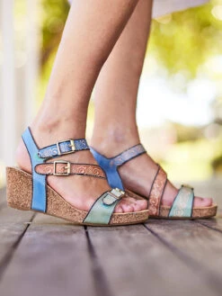 - Cork-wrapped comfort platform wedge